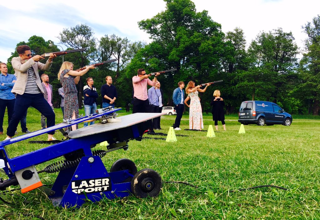 Laserlerduveskytte är en modern och miljövänlig variant av klassiskt lerduveskytte – helt ofarligt och möjligt att genomföra året runt, även i mörker.